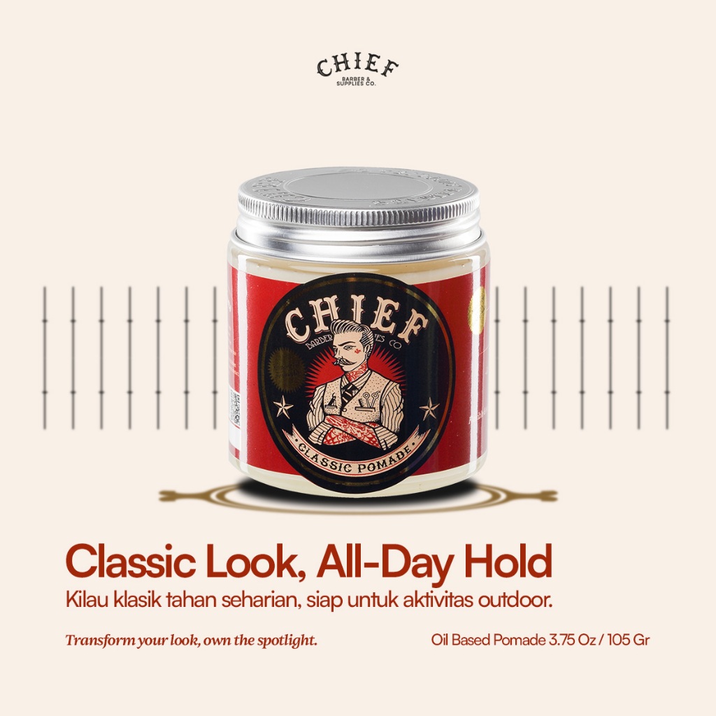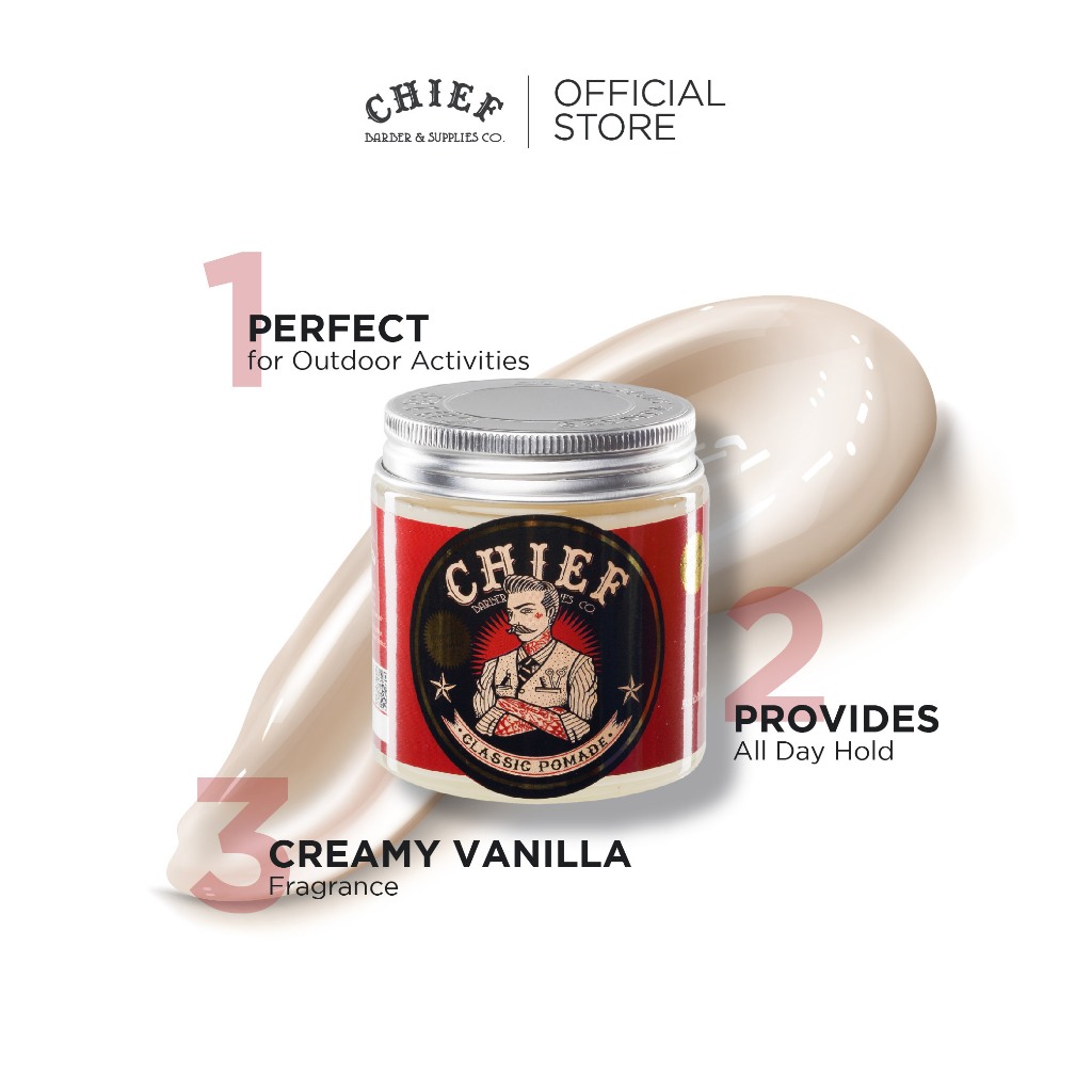 Chief Classic Pomade 105 Gr – Tampilan Berkilau Dan Hold Seharian Dengan Aroma Vanilla – Olive Oil & Zea Mays Starch – R