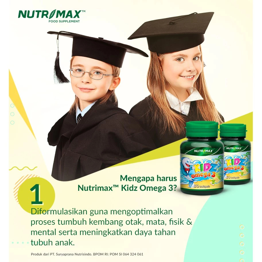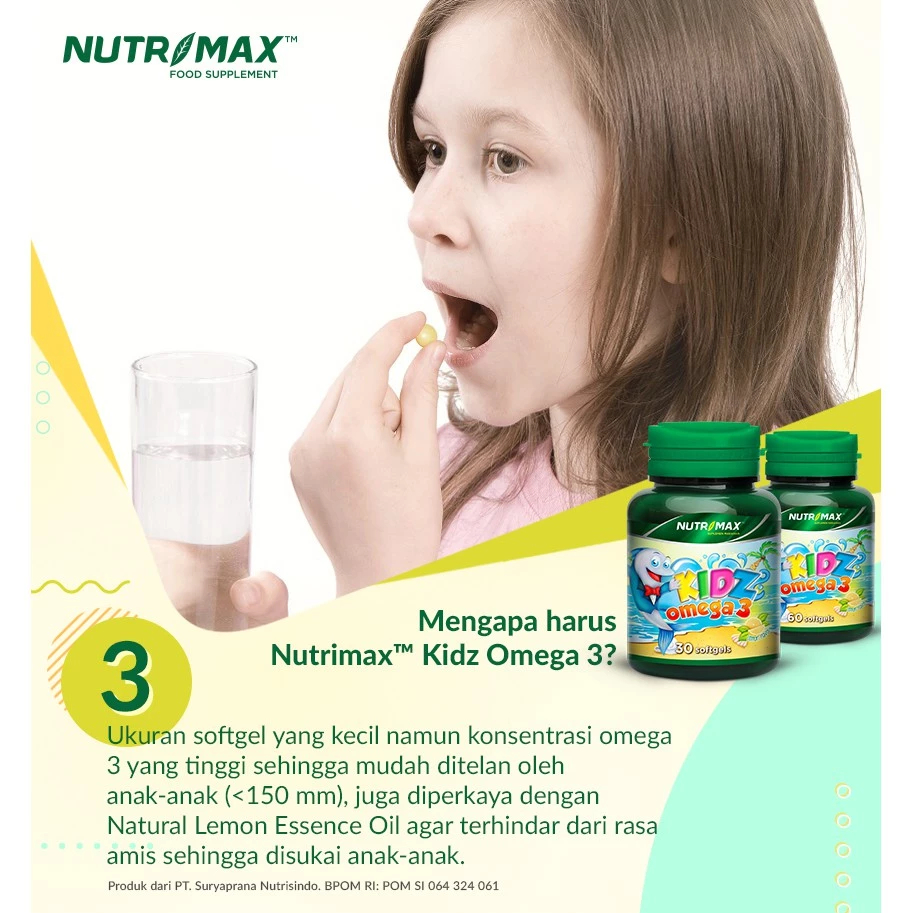 Nutrimax Vitamin Kidz Omega 3 - Isi 30 Softgel - Membantu Memelihara Daya Tahan Tubuh Imun Anak Kids - Rasa Lemon