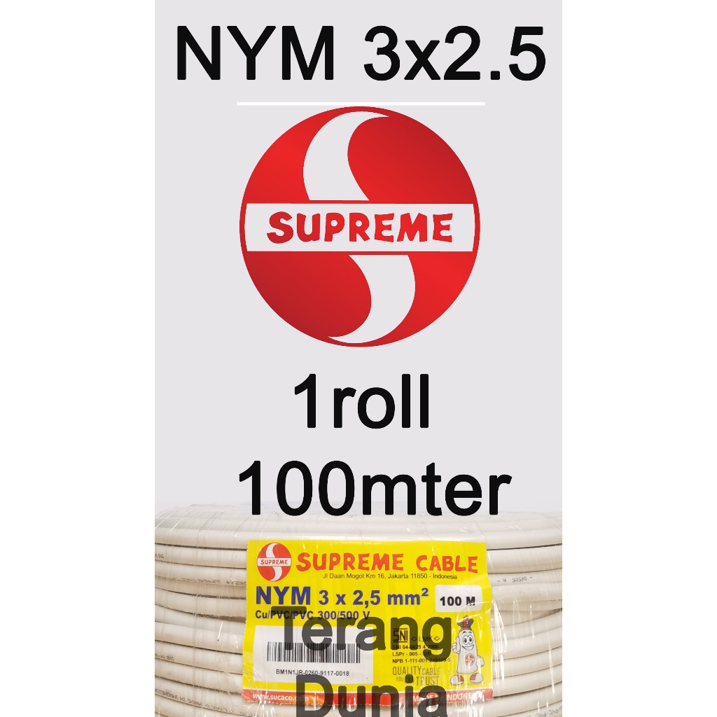 Kabel NYM Supreme 3x2.5 100 meter Kabel Tunggal 3x2.5 Supreme 100meter Kabel Supreme NYM 3x2.5 100meter