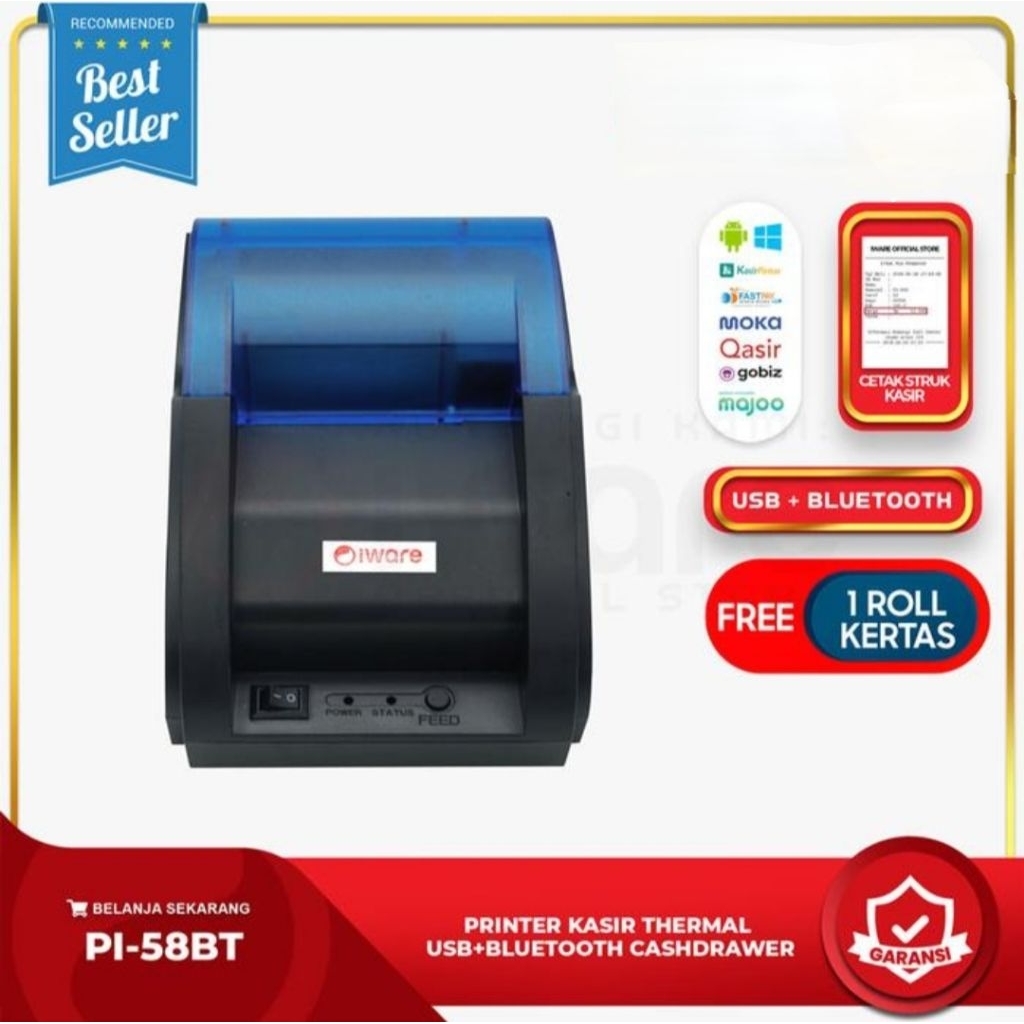 Printer Thermal Iware Rj11 Usb Bluetooth 58Mm