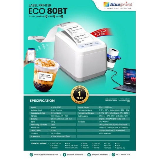 Blueprint Printer Thermal Desktop Eco80Bt Usb+Bluetooth