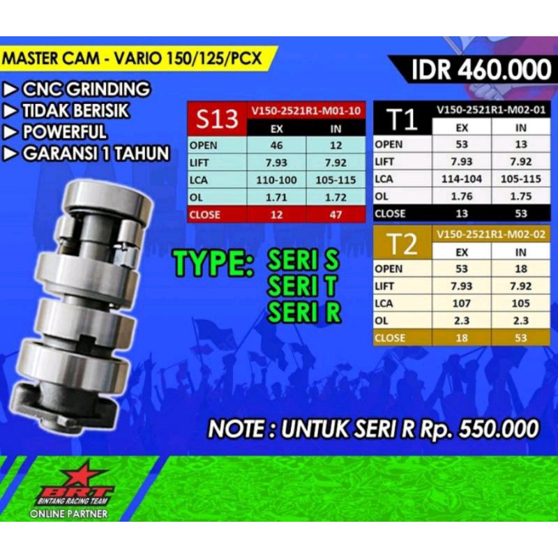 master cam Noken as BRT Vario 125 150 pcx 150 lokal adv 150 T1 T2 R3 R4