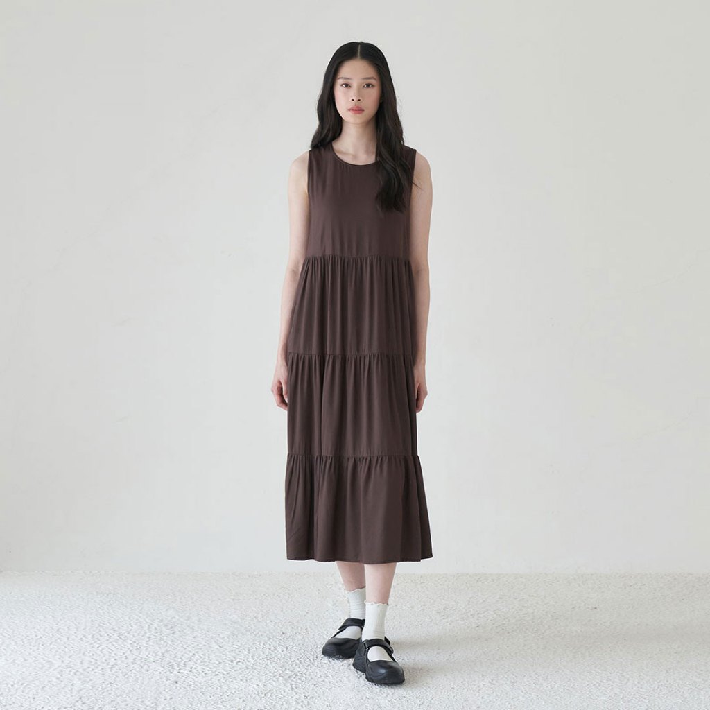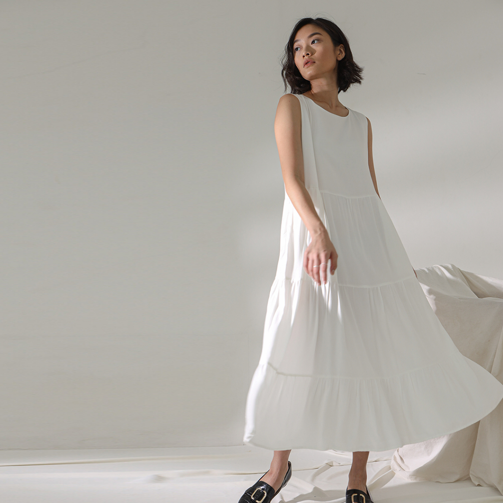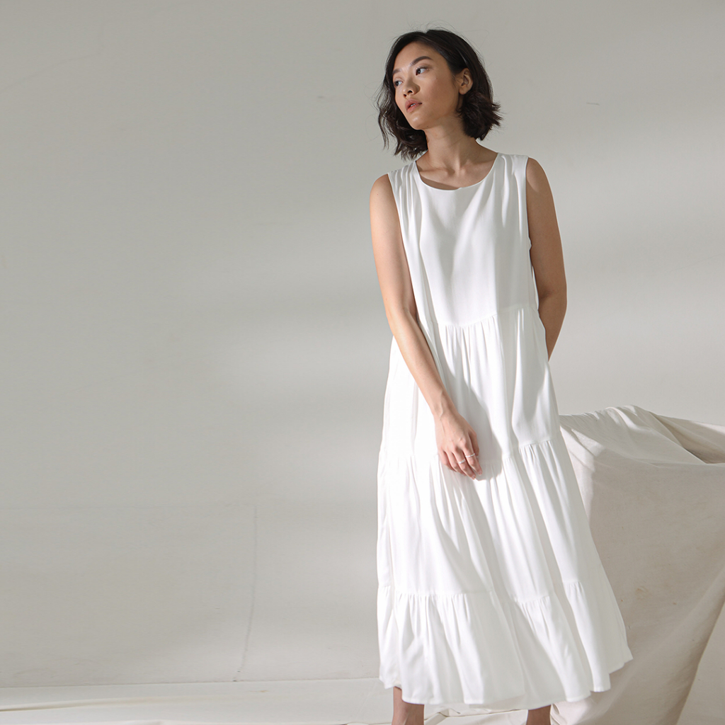 Inkano Bree - Sleeveless Midi Dress Rayon Warna Putih, Coklat Beige, Hijau O, Hijau Sage, Hitam