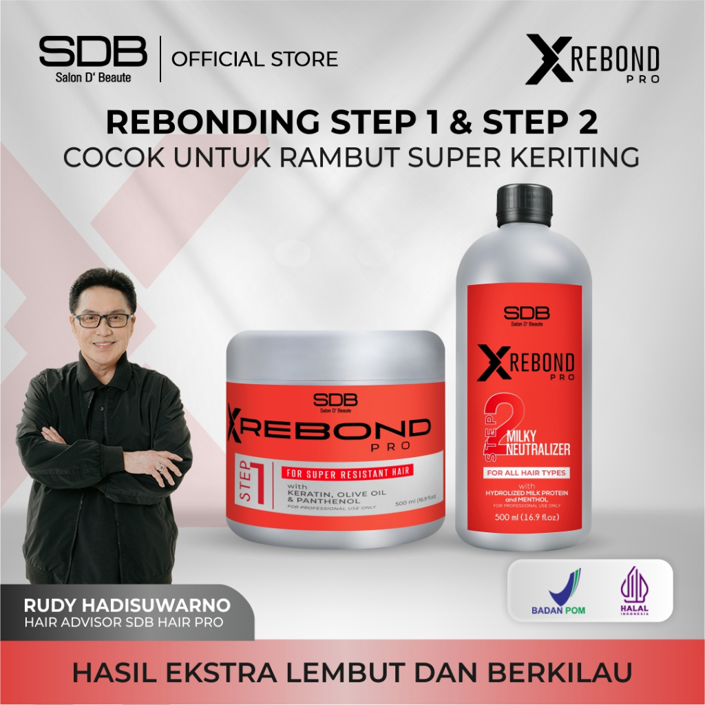 Sdb X Rebond Pro - Step 1 For Super Resistant Hair 500Ml / Step 2 Milky Neutralizer / Professional Hair Smoothing Kerati