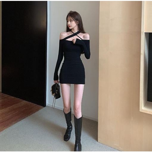 Rsb Dr359 Baju Mini Dress Sabrina Knit Dress Wanita Long Sleeve Motif Polos