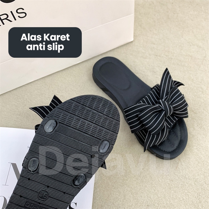 Dejavu Sendal Wanita Slop Jelly Kekinian Sendal Korea Pita Karet Rumah Flat Anti Slip HSN119
