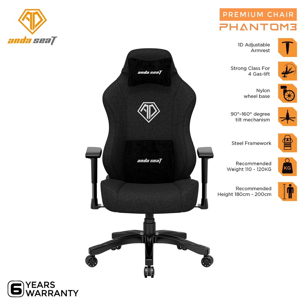 Andaseat Phantom 3 Series Premium Office Gaming Chair - Black Fabric