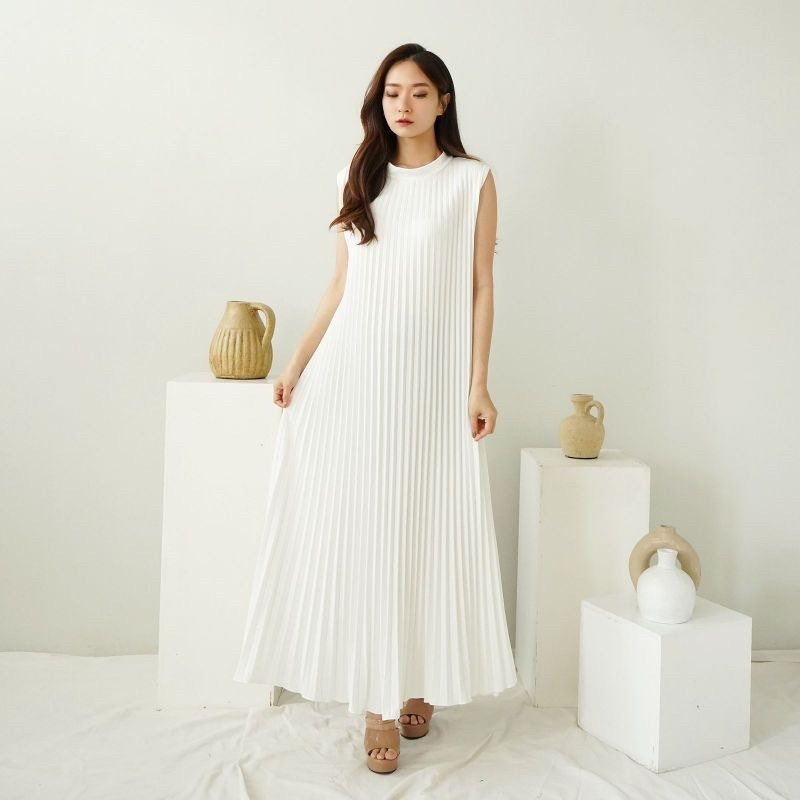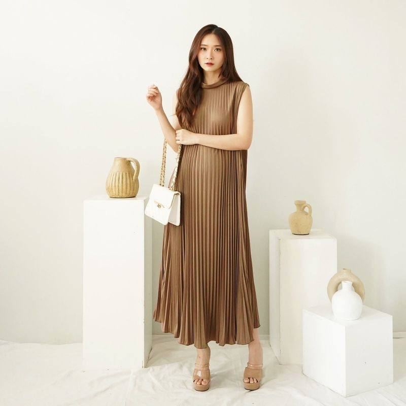 Inner Plisket Dress Lengan Buntung Gless Hyget Premium Polos Mayung Modellano Murah Grosir Supplier