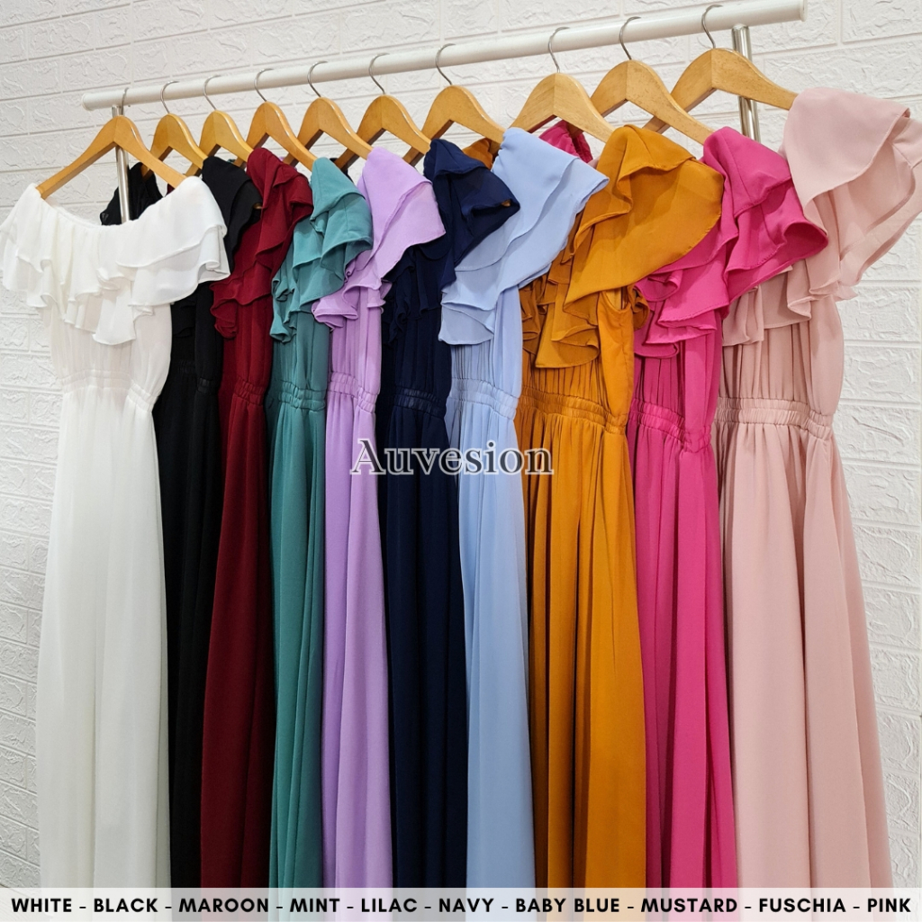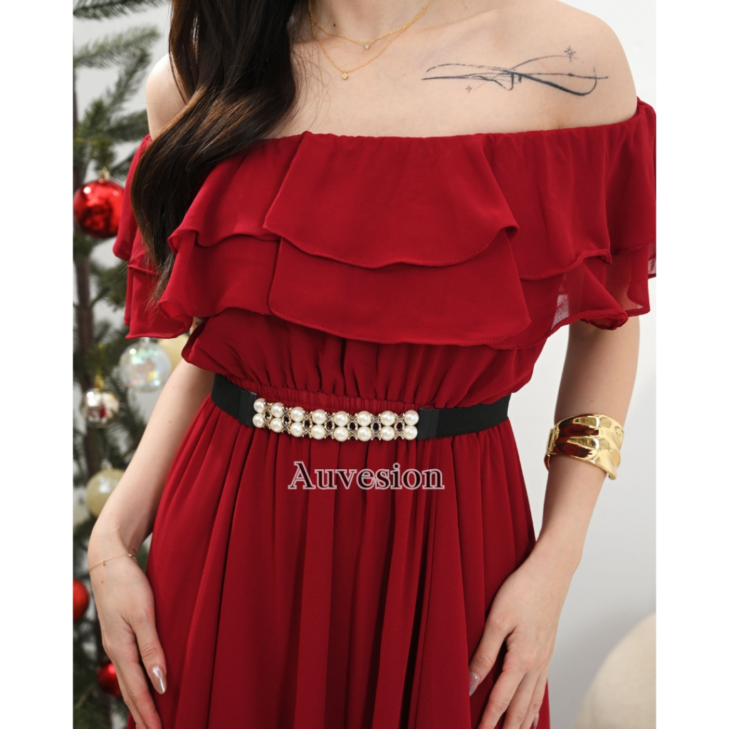Auvesion Malaika Sabrina Ruffle Dress 4202 | Cny Pesta Sabrina Dress Maternity Dress Gaun Pesta Elegan