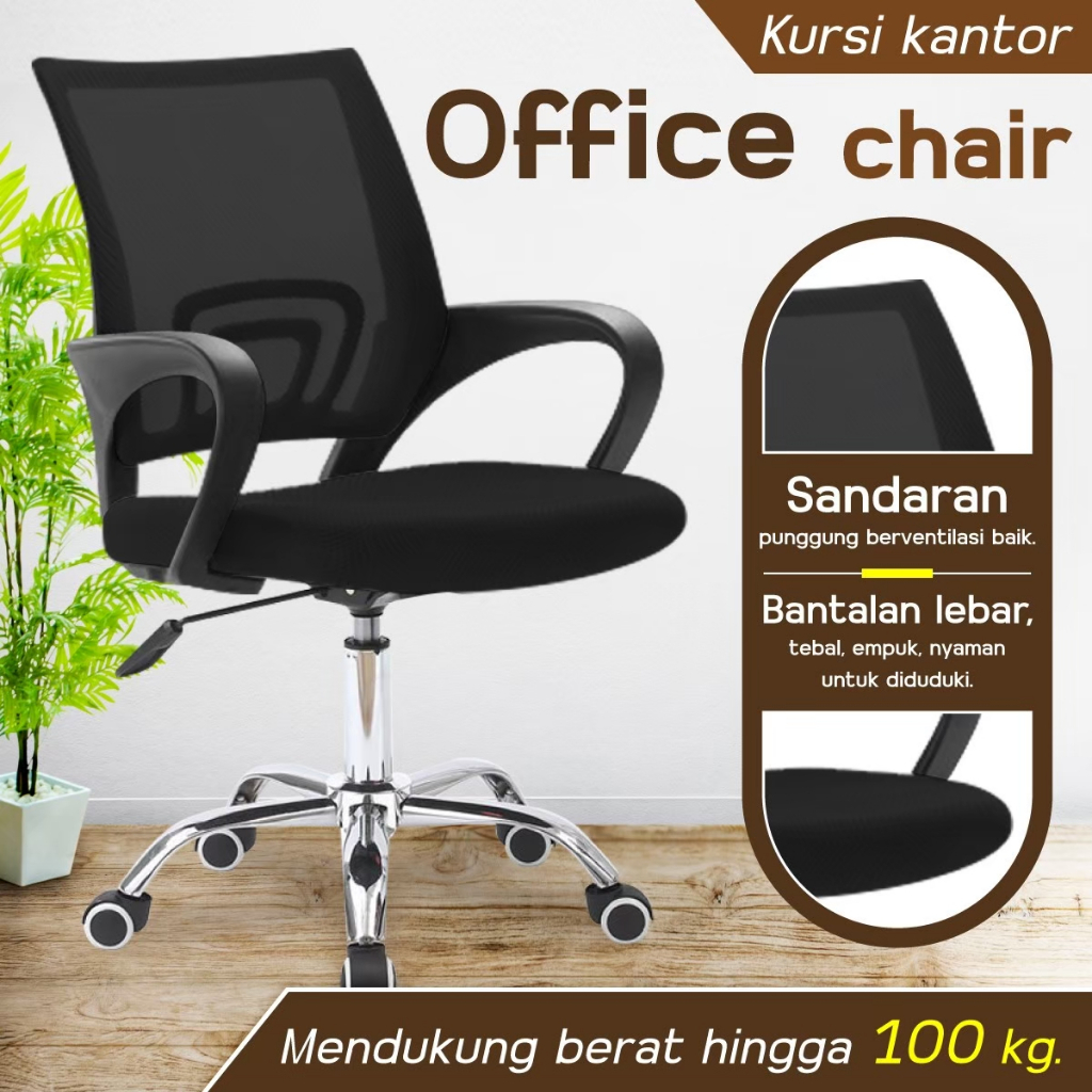 Htd Sport Kursi Kerja Kantor Hidrolik Kuat Hingga 100Kg Office Chair Black Steel
