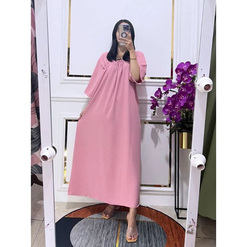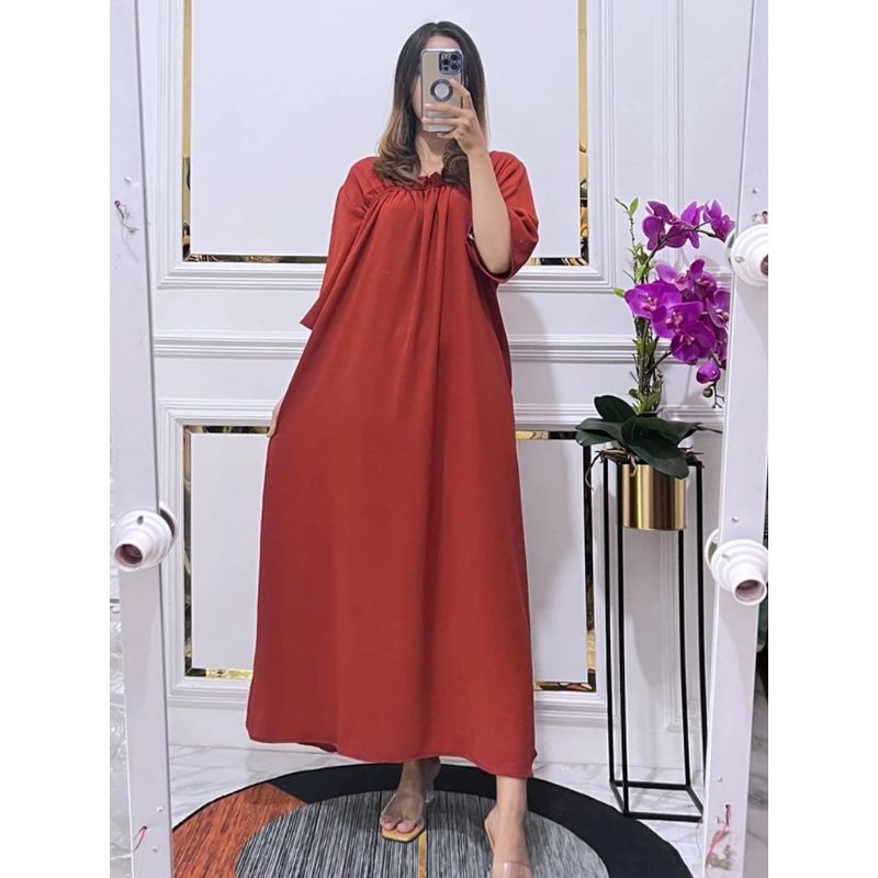 Daster Fuji Panjang Semata Kaki Lengan 3/4 Busui Kerut Dada Kain Crinkel Airflow Premium