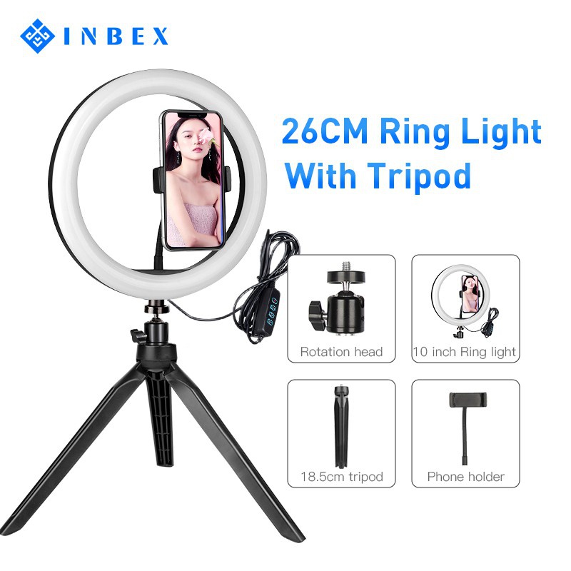 【✨Termurah paket komplit 】INBEX 26cm Ring Light PH Tripod+Phone Holder LED Selfie Ring Light Kit