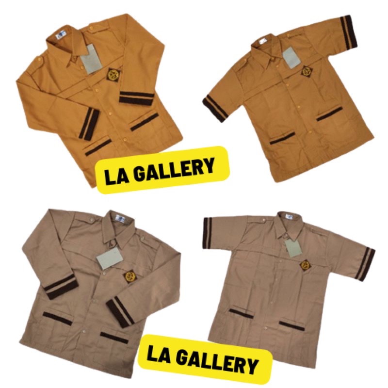 Seragam Sekolah - Kemeja Pramuka Siaga Panjang SD-SMP Coklat Susu dan Kuning Bahan Oxford Super