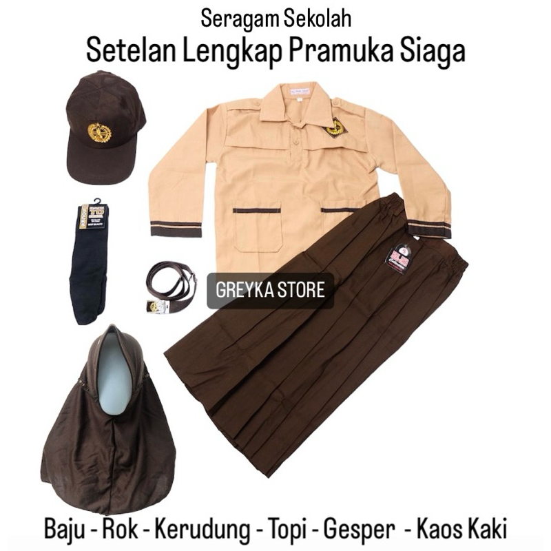 Setelan Super Lengkap Pramuka Siaga Seragam Sekolah SD Perempuan BAJU PANJANG ROK PANJANG