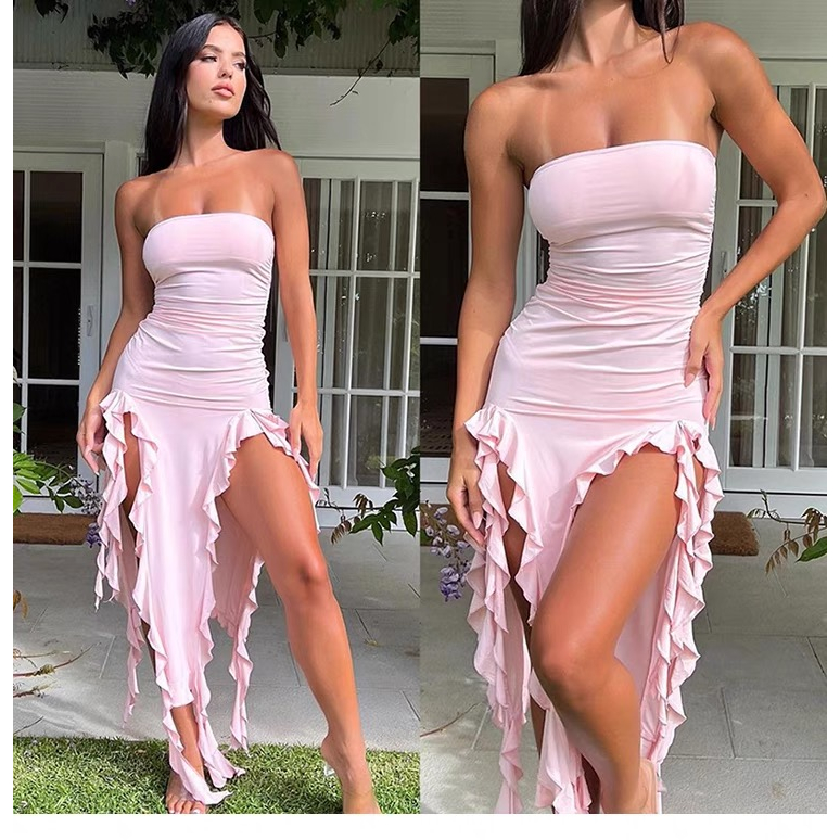 Strapless Ruffle Midi Dress With Side Splits 2747 (S/M/L)