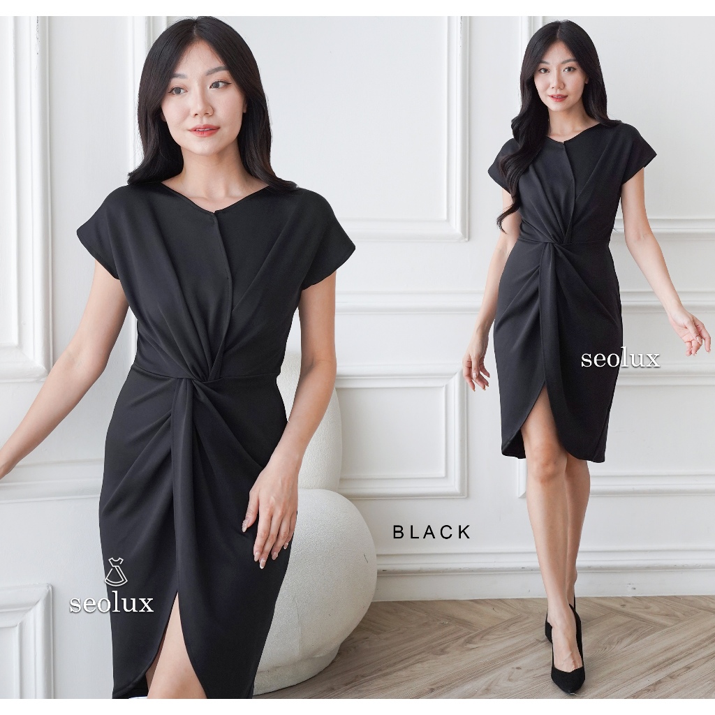 Ds823 - Dress Sepan Scuba Kantor Midi Knot Wanita Grosir Murah