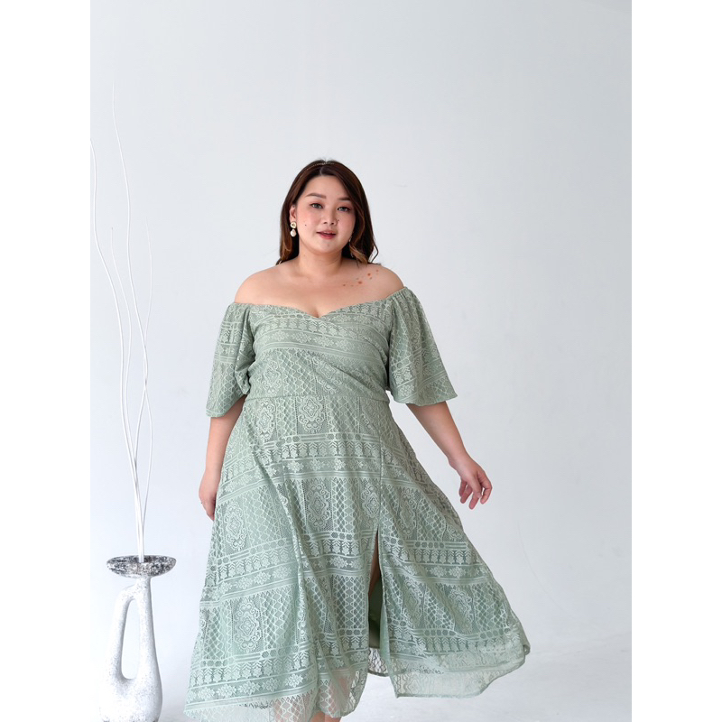 Estelle Bigsize Dress Brokat Malaika | Dress Pesta Jumbo