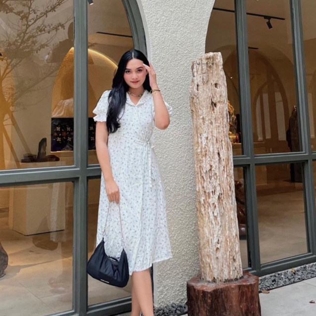 Joueta | Sunbin Hwasa Dress | Dress Wanita Korean Style Bahan Woven Motif Bunga