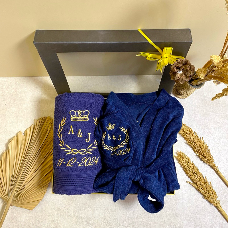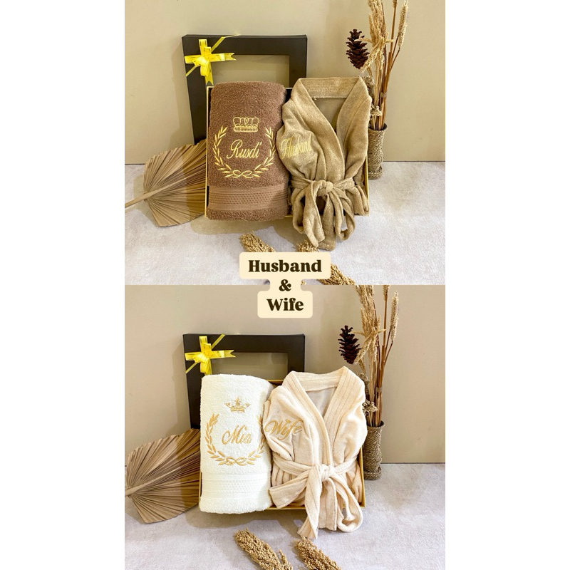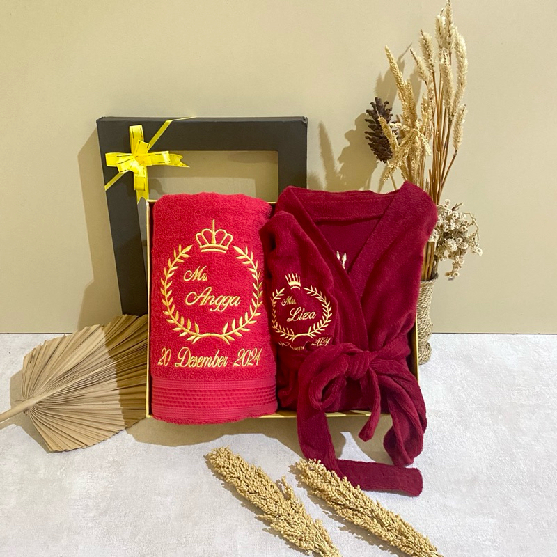 Anjoly-Handuk Kimono Dewasa Couple Seserahan Pernikahan 135x70Cm Free Bordir Nama