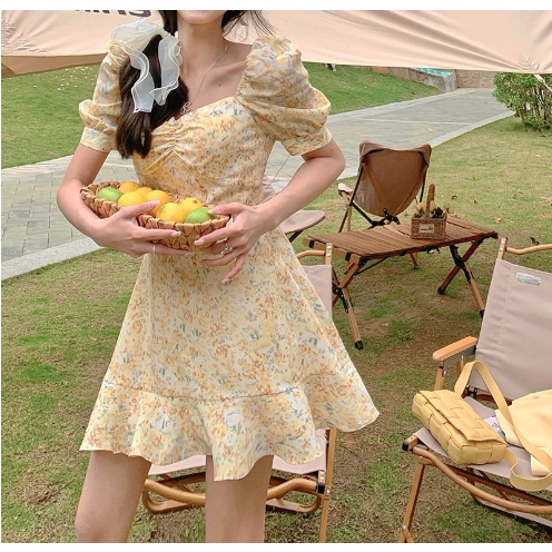 Daisy Dress In Yellow And Pink / Dress Casual Kasual / Summer Floral Dress / Babydoll Dress/ Dress Rok Kembang Flair / K