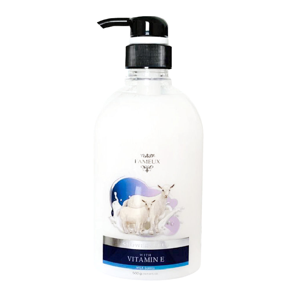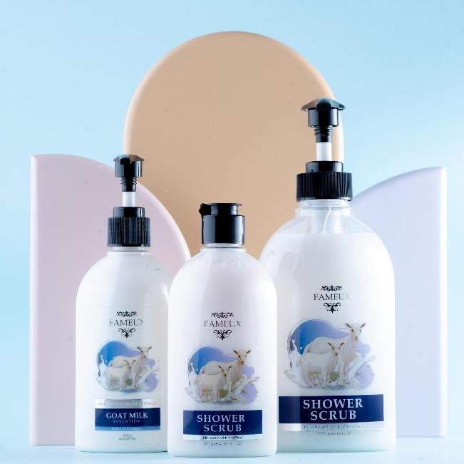 Fameux Whitening Shower Scrub Goat 500 Ml | Body Wash Booster | Sabun Mandi Cair Pencerah Kulit & Melembabkan | Whitenin