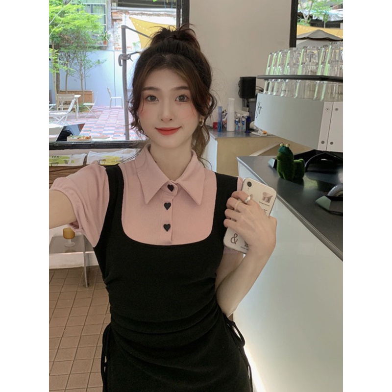 Susana Id Mini Dress Polo Collar Korean Style D147