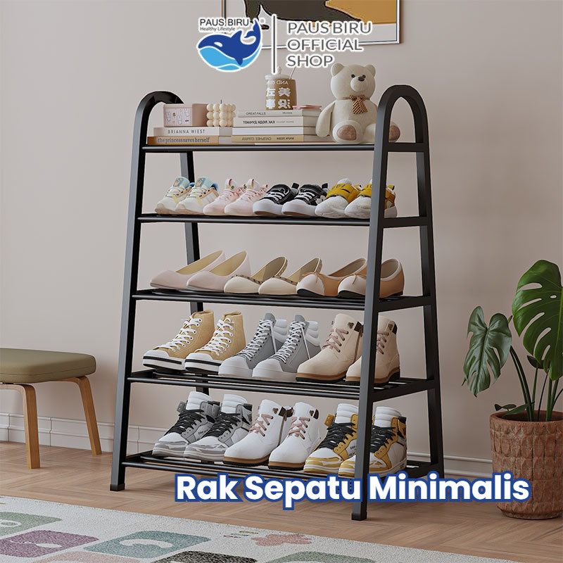 Paus Biru - Rak Sepatu Besi 4+5 Susun Estetik Minimalis | Anti Karat Kuat Portable Serbaguna