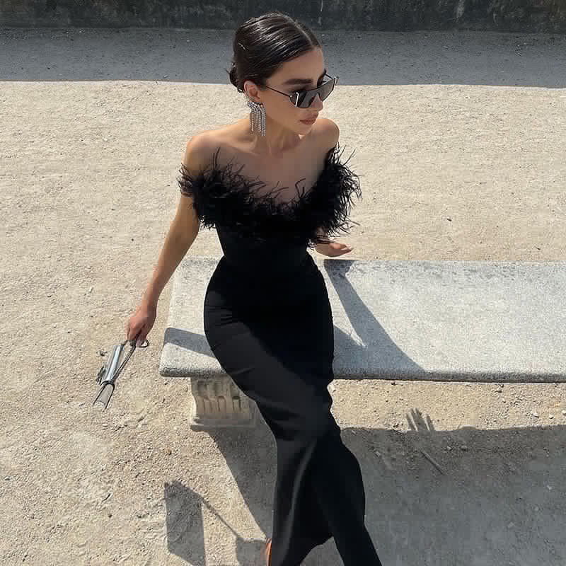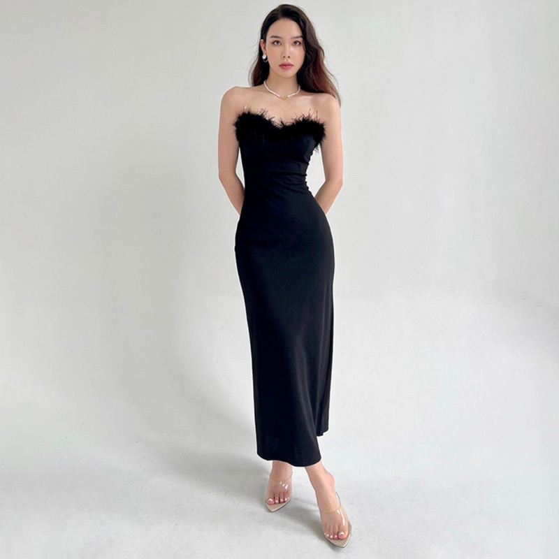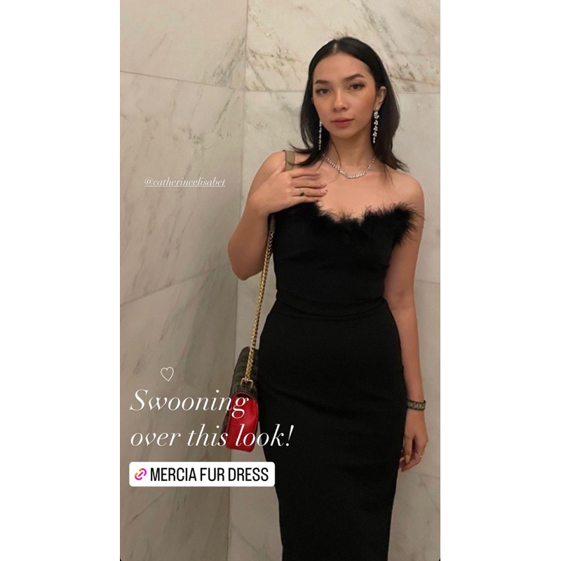 Grandy - Mercia Fur Dress / Black Party Dress Pesta Wanita Bulu (Free Strap)