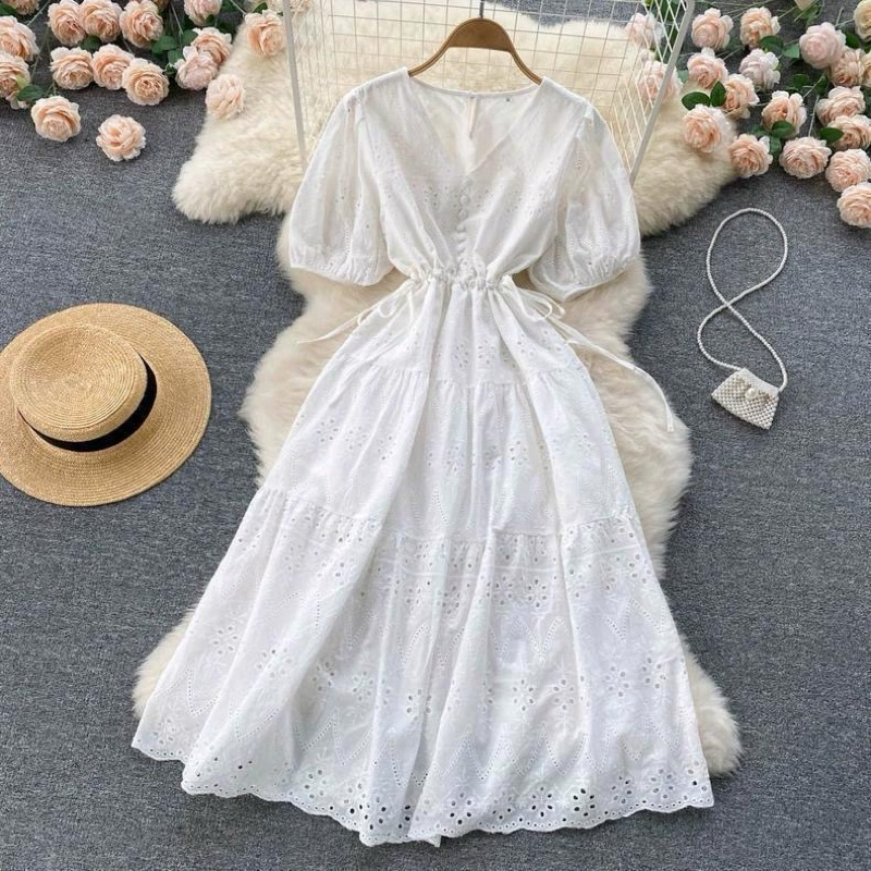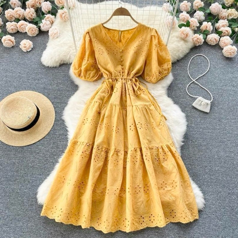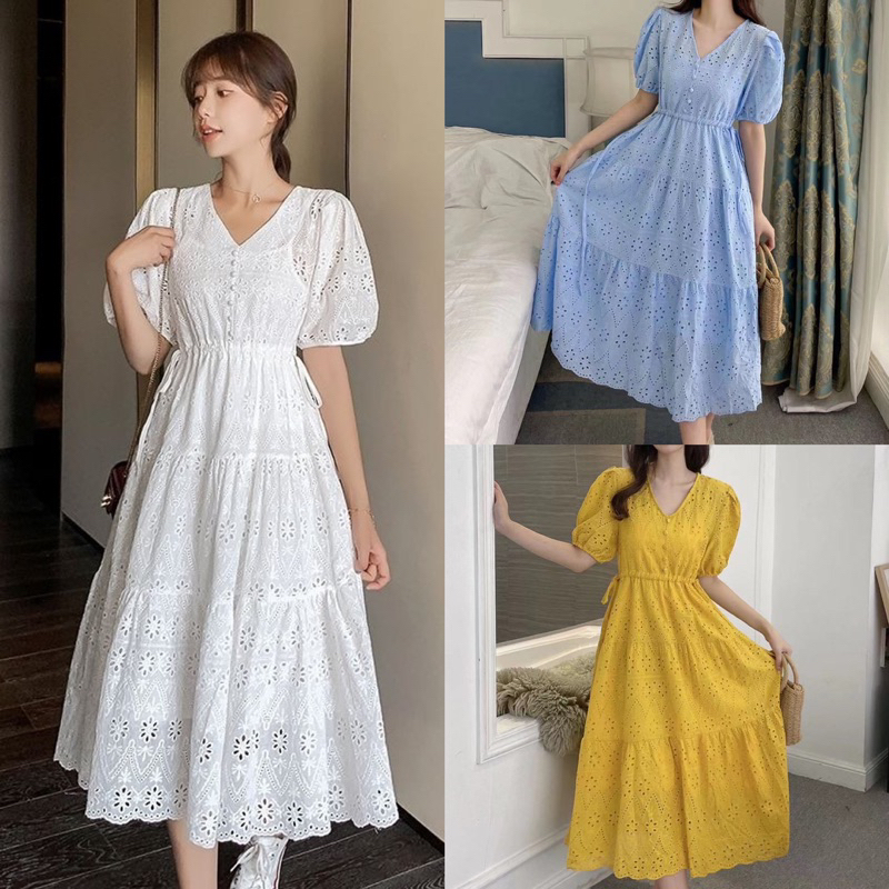 D1166 Netzer Korean Style Eyelet Vintage Midi Dress Polos