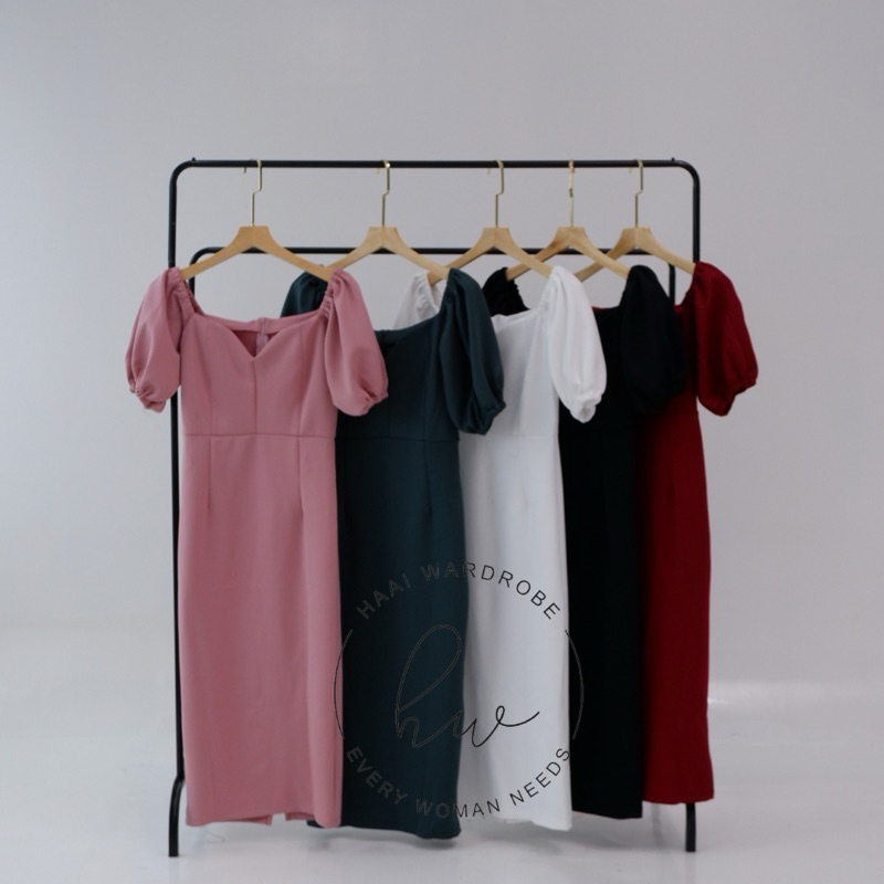 Hw - Louvre Midi Dress - 206 - Gaun Pesta Dress Formal Dress Midi Sabrina Dress Baju Imlek Baju Chinese New Year