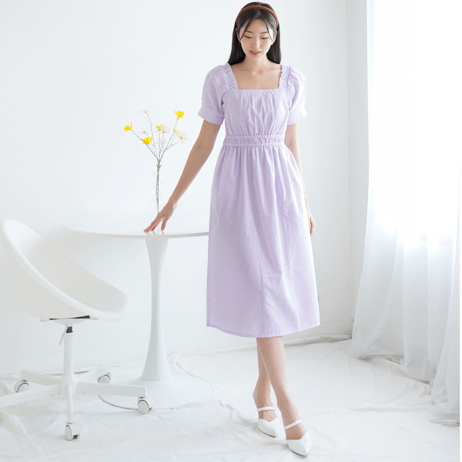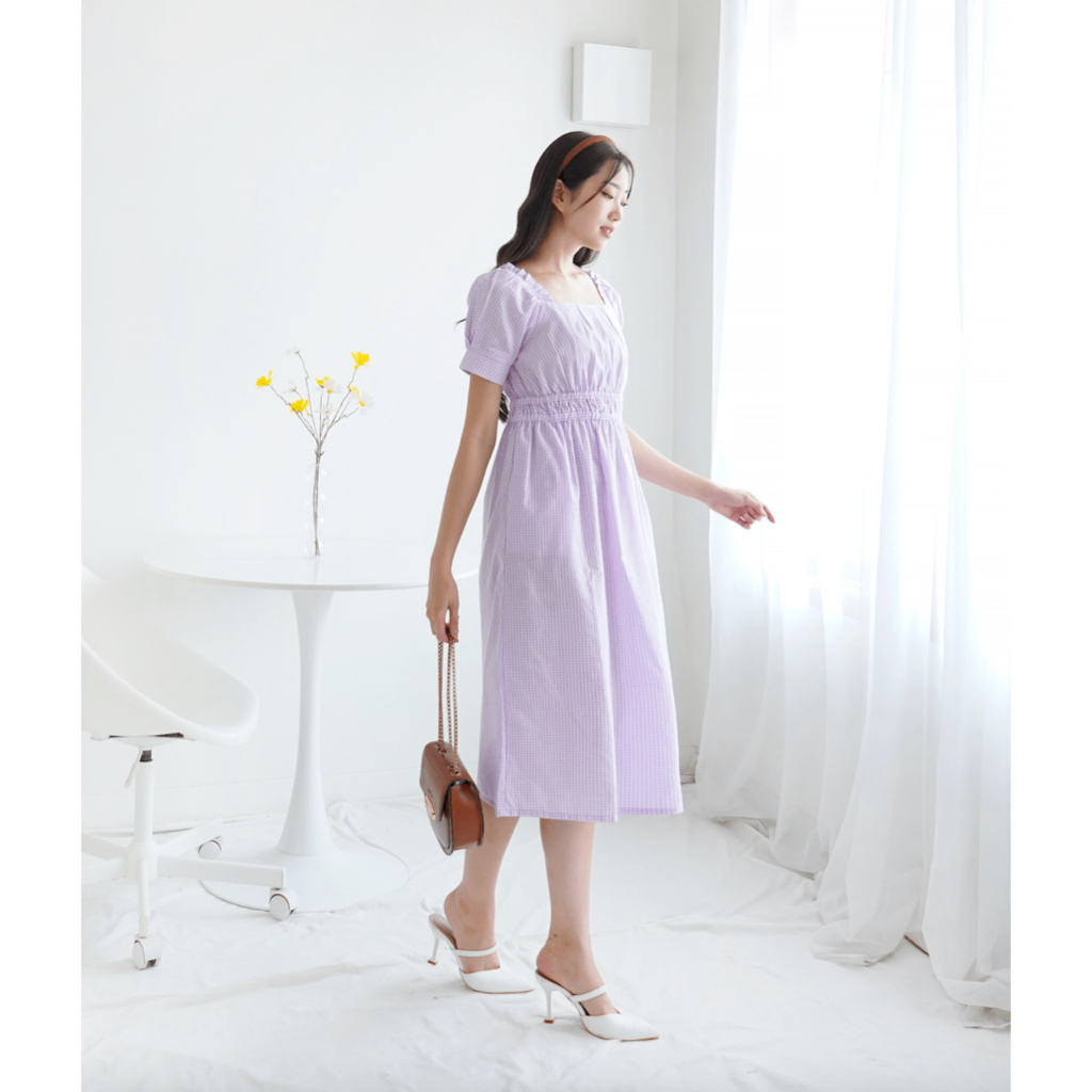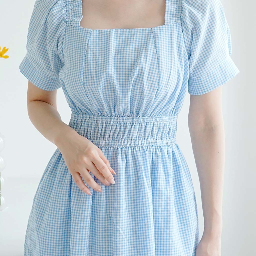 Joueta | Ryujin Midi Dress | Dress Biru Wanita Korean Style Bahan Woven Kotak Big Size S-Xxl