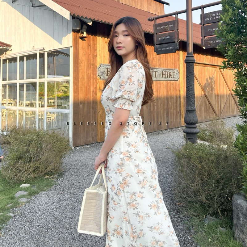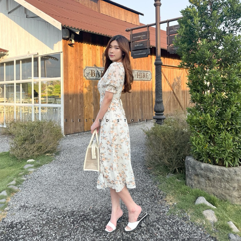 D0419 Destiny Korean Floral Vintage Midi Dress Pantai Musim Panas Summer Gaya Retro