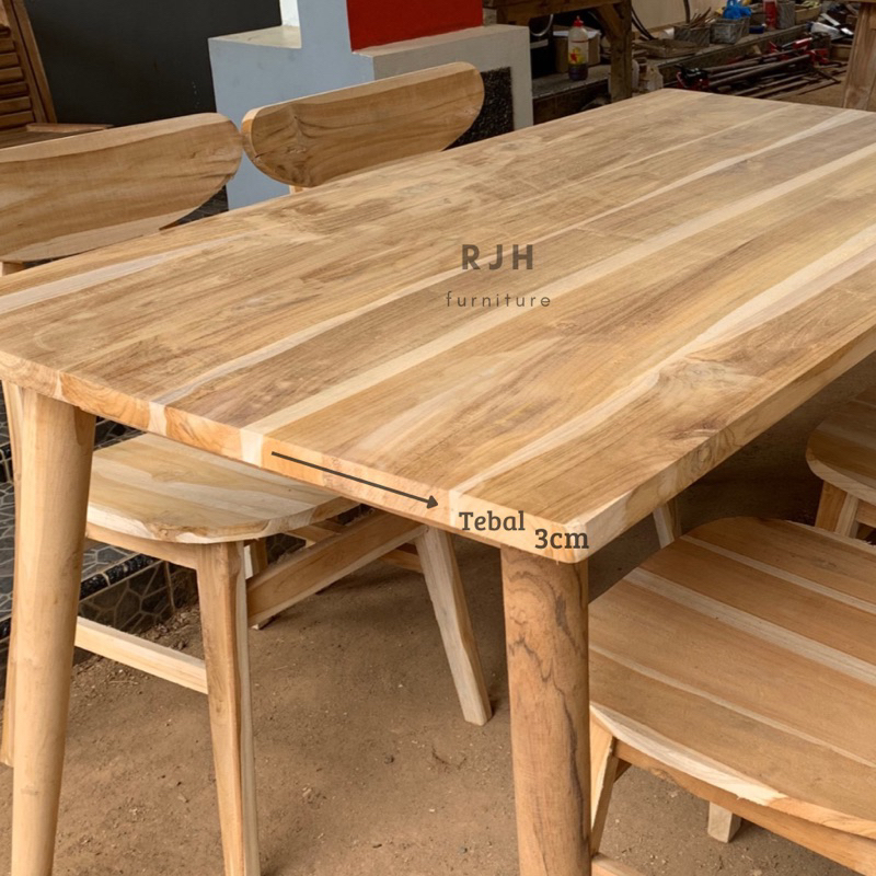 Set Meja Makan Ropan, Dinning Set, Meja Makan Tebal 3Cm,Kursi Retro