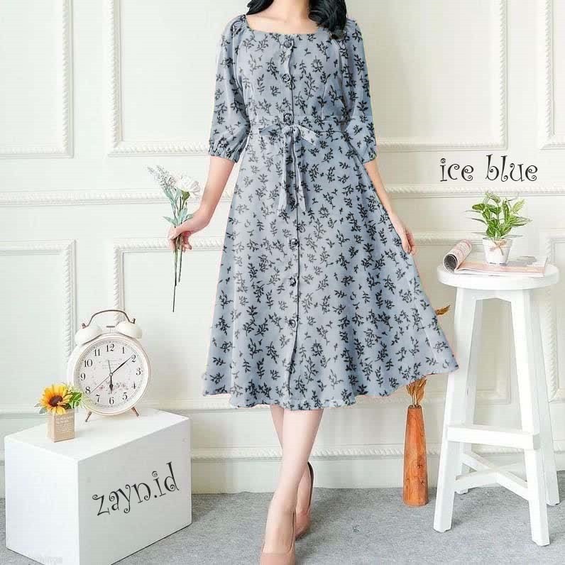 Terbatas Dress Tiffani Casual Dress Motif Bunga Dress Wanita Elegant Super Cantik