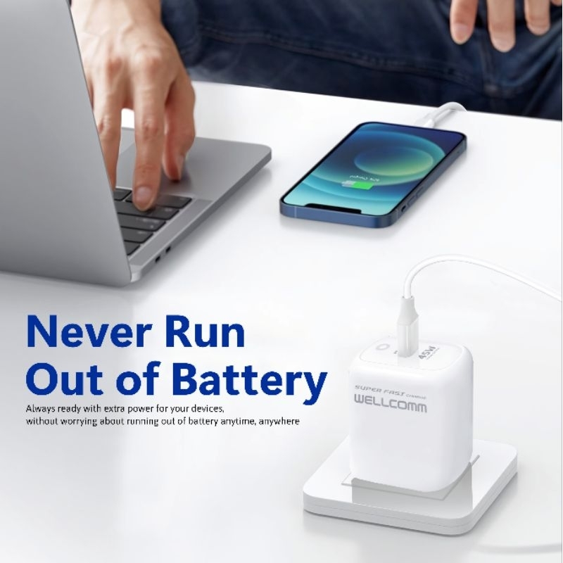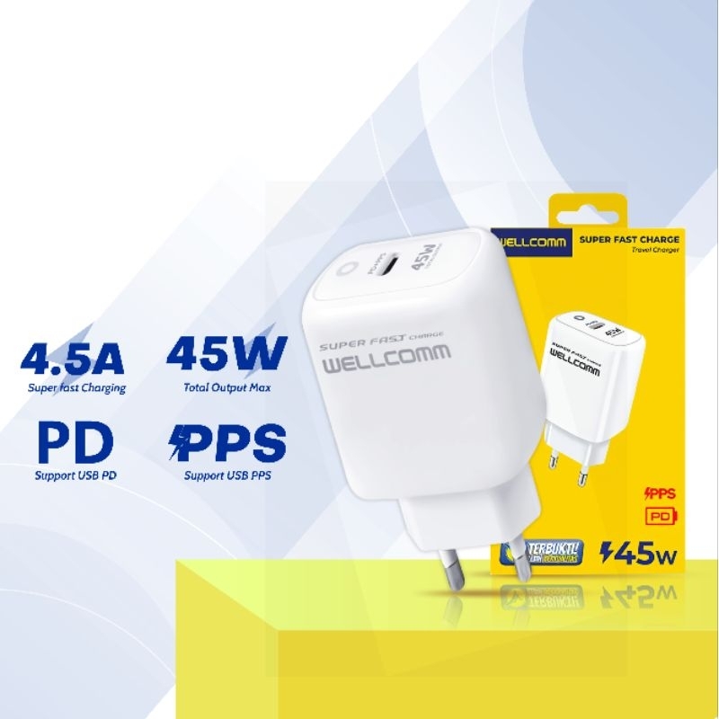 [Star] Wellcomm 45W Wall Charger | Super Fast Charge PD PPS Single Port USB-C + Kabel Type-C to C