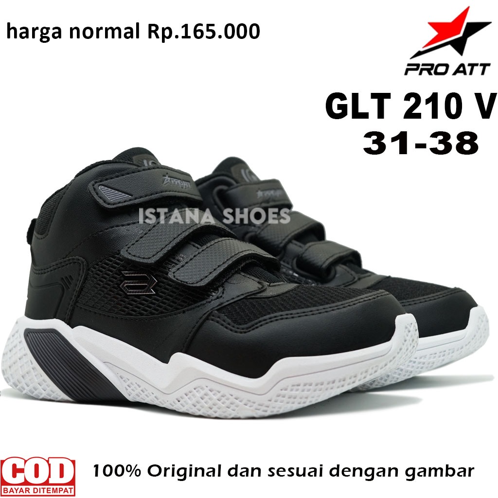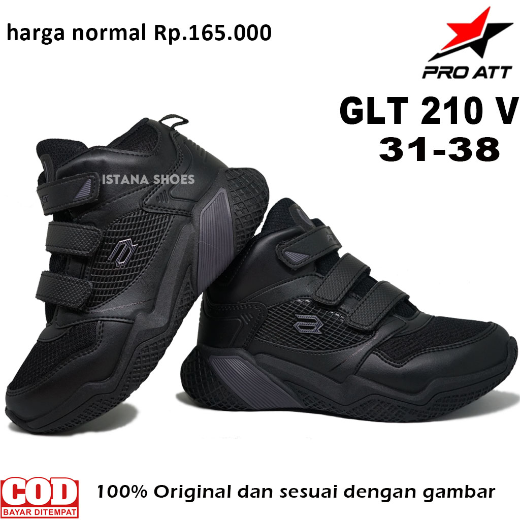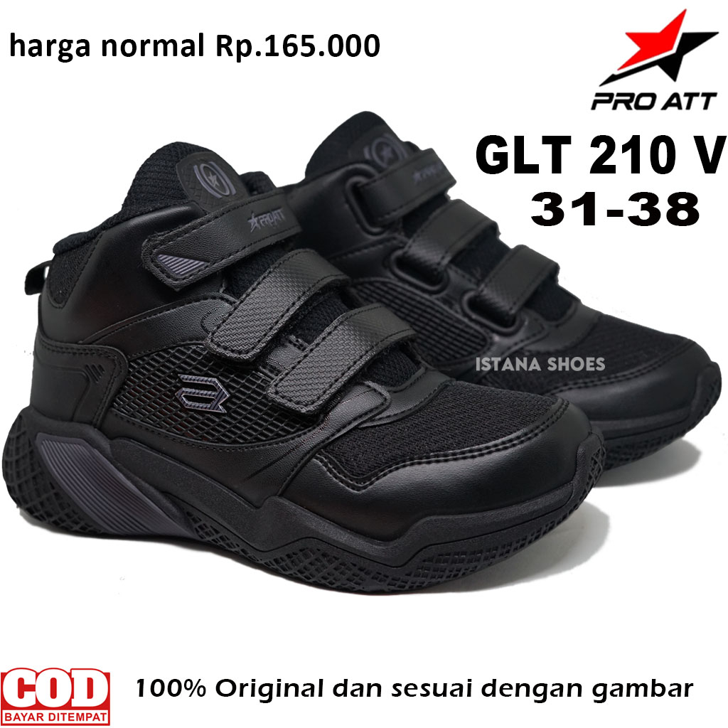Sepatu Sekolah Anak Laki Laki Perempuan PAUD TK SD SMP PRO ATT GLT 210 V3 Perekat Full Hitam Boots