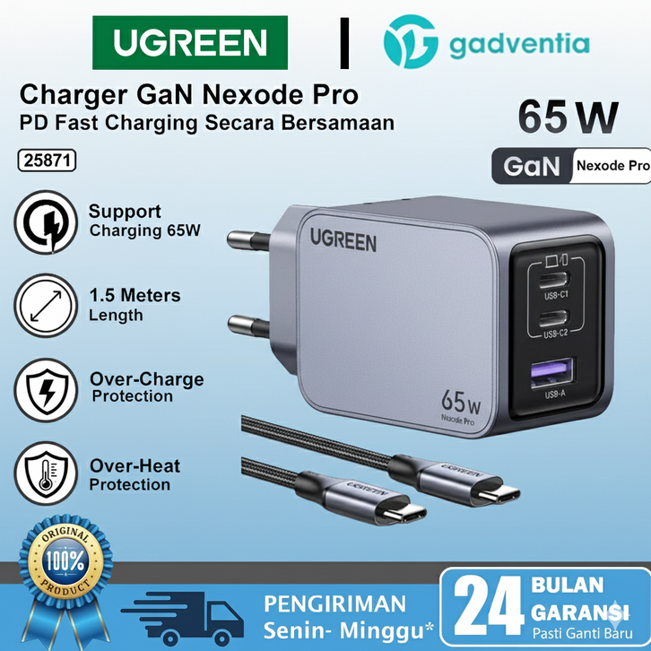 [Star] UGREEN Nexode Pro Wall Charger 65W GaN Fast Charging PD QC 4.0 PPS untuk Laptop MacBook iPad iPhone Samsung