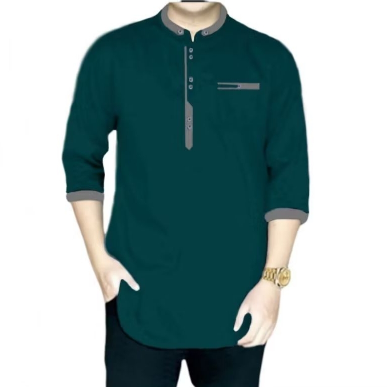 Atasan Baju koko Muslim pria dewasa Kurta Pakistan Bahan katun Toyobo Lengan 3/4 Fashion Modern