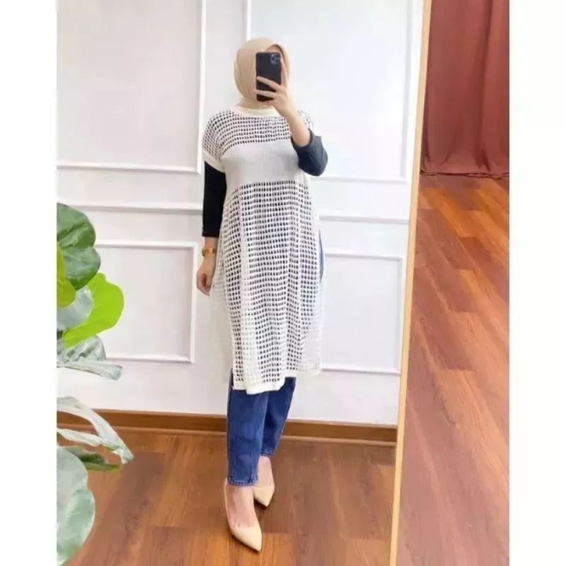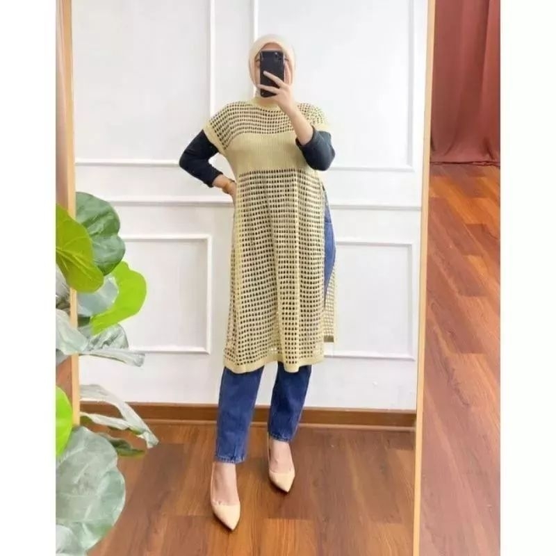 Rubi Tunik Dress Knit Belah Pinggir Atasan Rajut Jaring