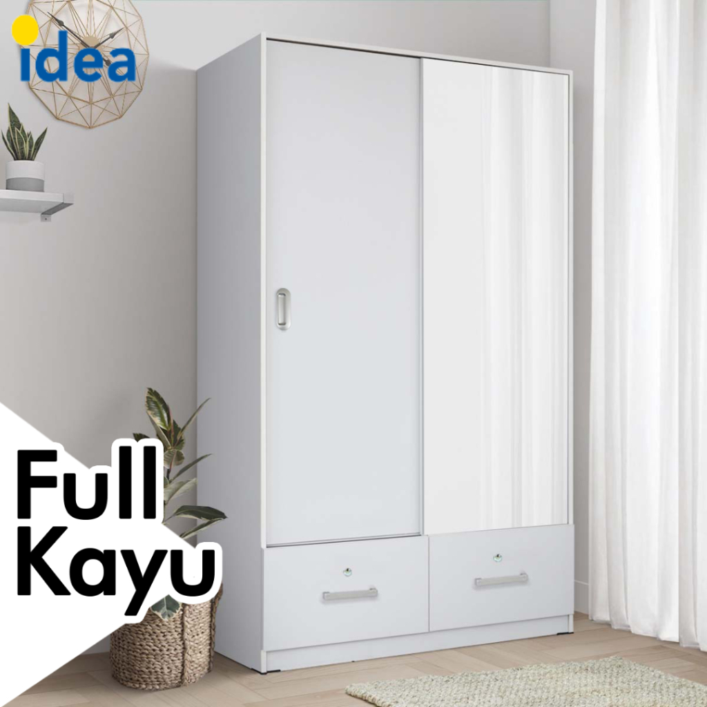 Idea Furniture Omaha Lemari Pakaian Baju Putih Sliding Door 2 Pintu Kayu Wardrobe Modern Minimalis
