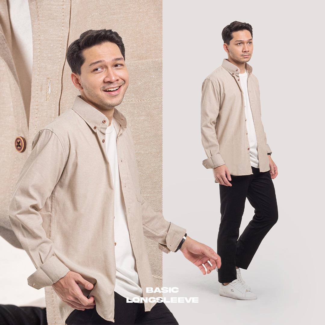 Kemeja Polos Pria Oxford WOODCUTTER Basic Shirt - Cream Khaky Longsleeve Lengan Panjang