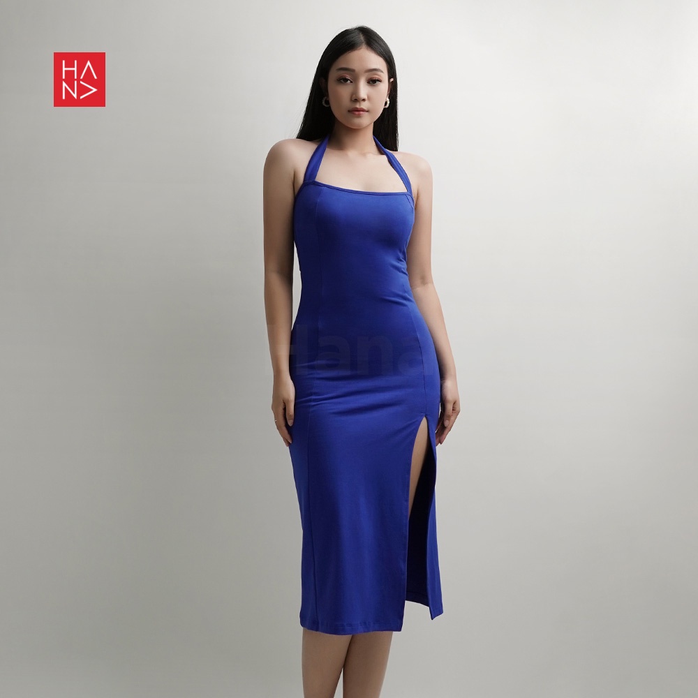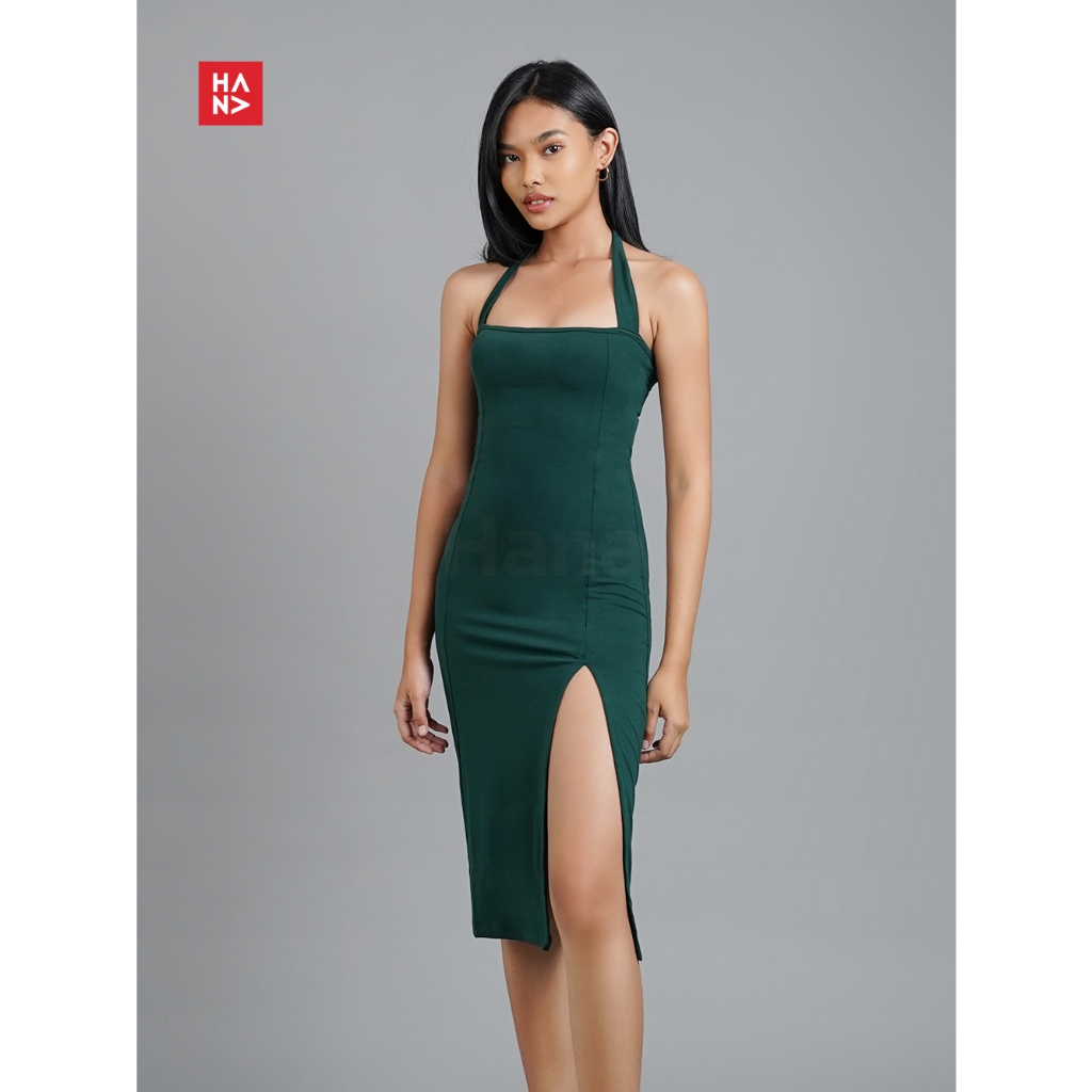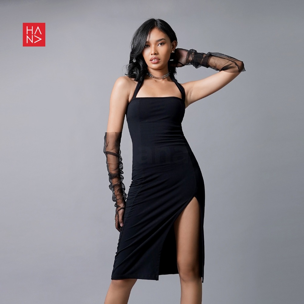 Hana Fashion - Kayla Midi Dress Hitam Bodycon Split Wanita - Tt034