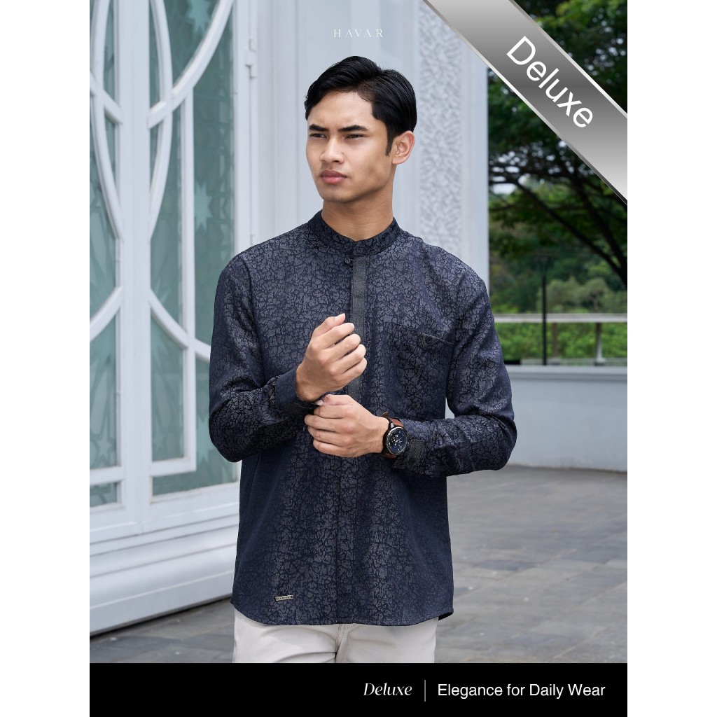 HAVAR Farid Black Kemeja Koko Muslim Premium Slimfit Lengan Panjang