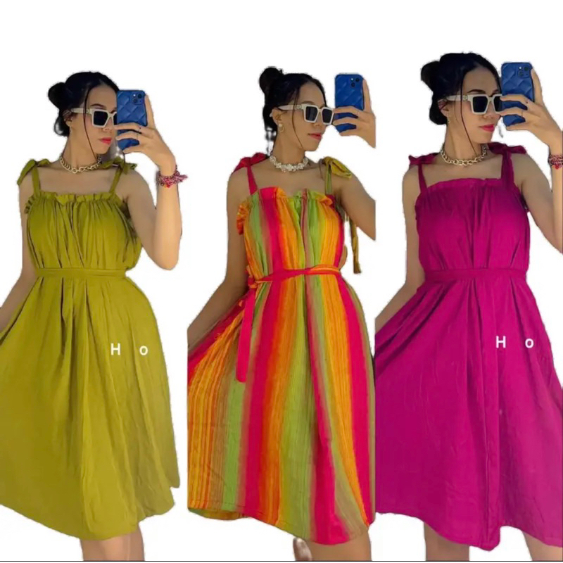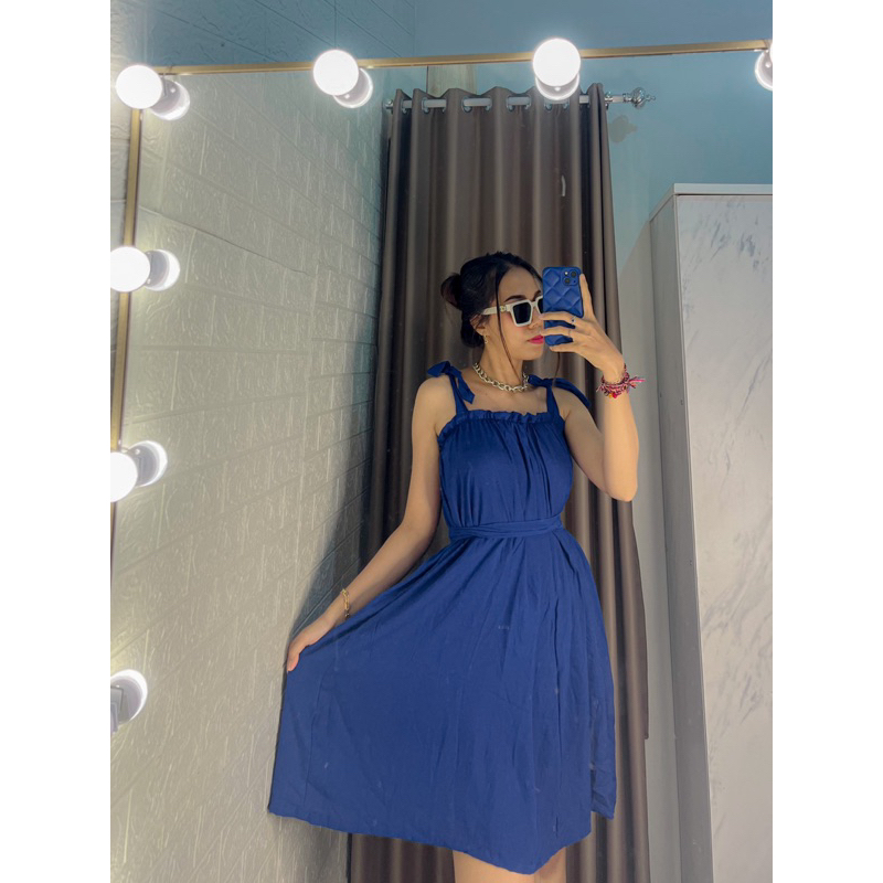 Loly Dress Mini Tali Pundak - Bahan Rayon - Gaun Wanita Santai