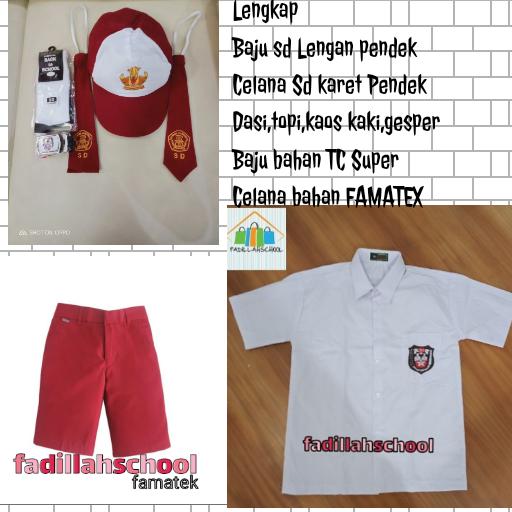 SERAGAM SEKOLAH SD LAKI LENGKAP BAJU PENDEK CELANA MERAH PENDEK KARET - KELAS 1
