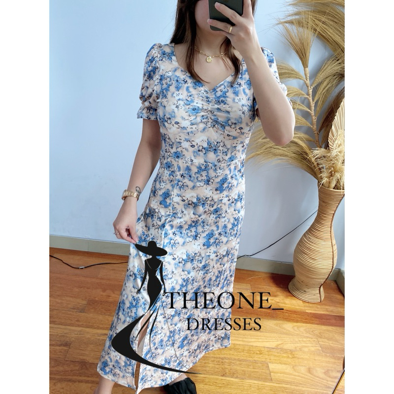 Theone || V Neck Floral Tie Dye Premium Dress Import (S/M/L/Xl/2Xl) || Gaun Pesta Wanita Bunga”