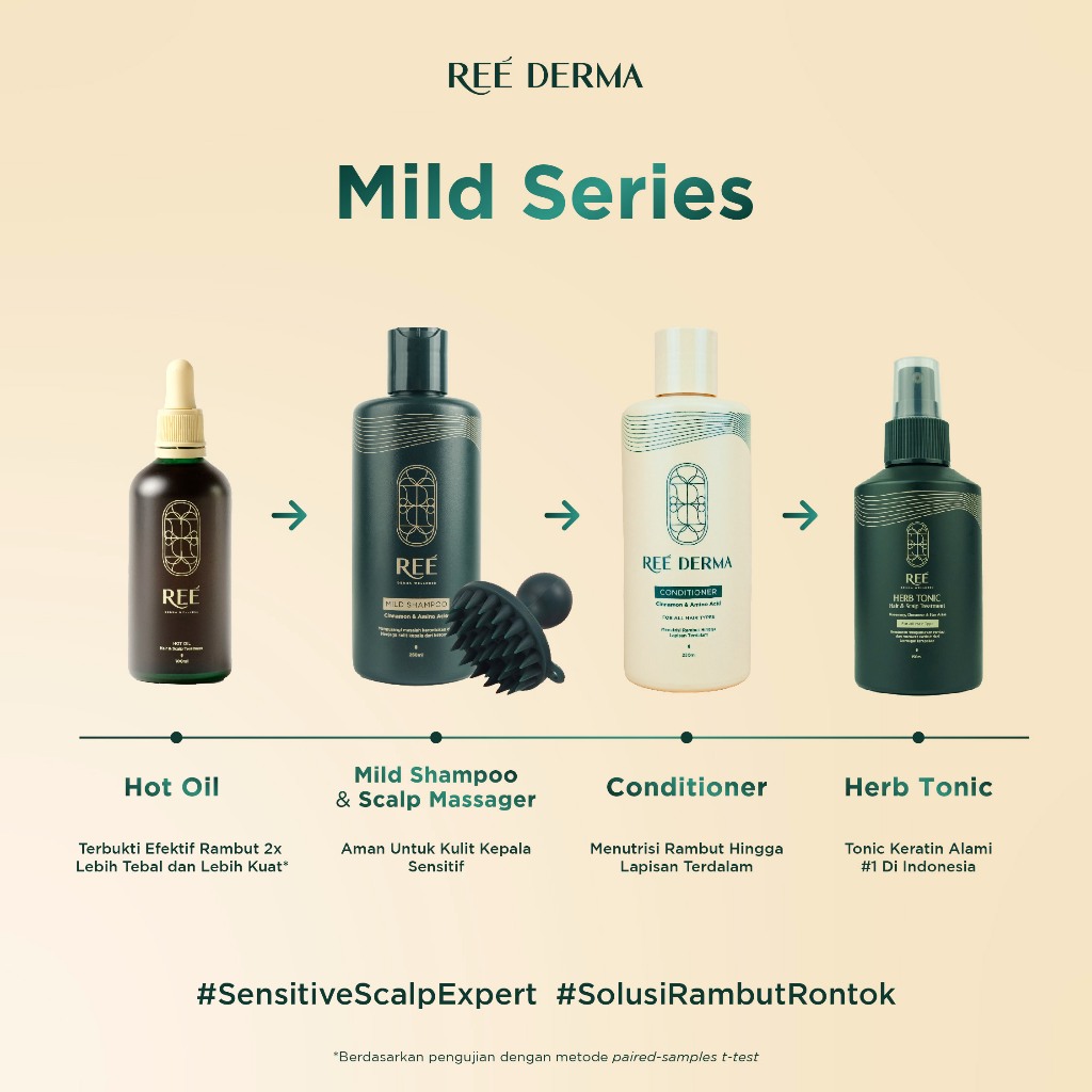Ree Derma Wellness Bundle 2 Cinnamon & Amino Acid Mild Shampoo|Perawatan Rambut Rontok|Kulit Kepala Sensitif|Non Sls & S