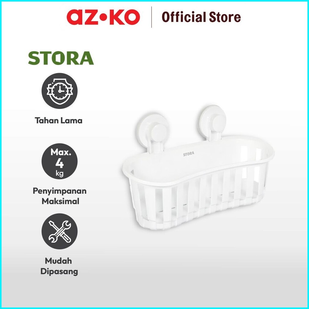 Azko Stora Keranjang Kamar Mandi - Putih Organizer Serbaguna Rak Sabun Shampoo Tempat Peralatan Mandi Bathroom Wall Shel