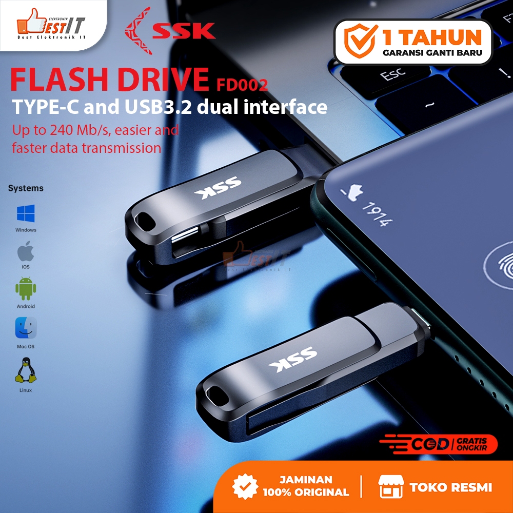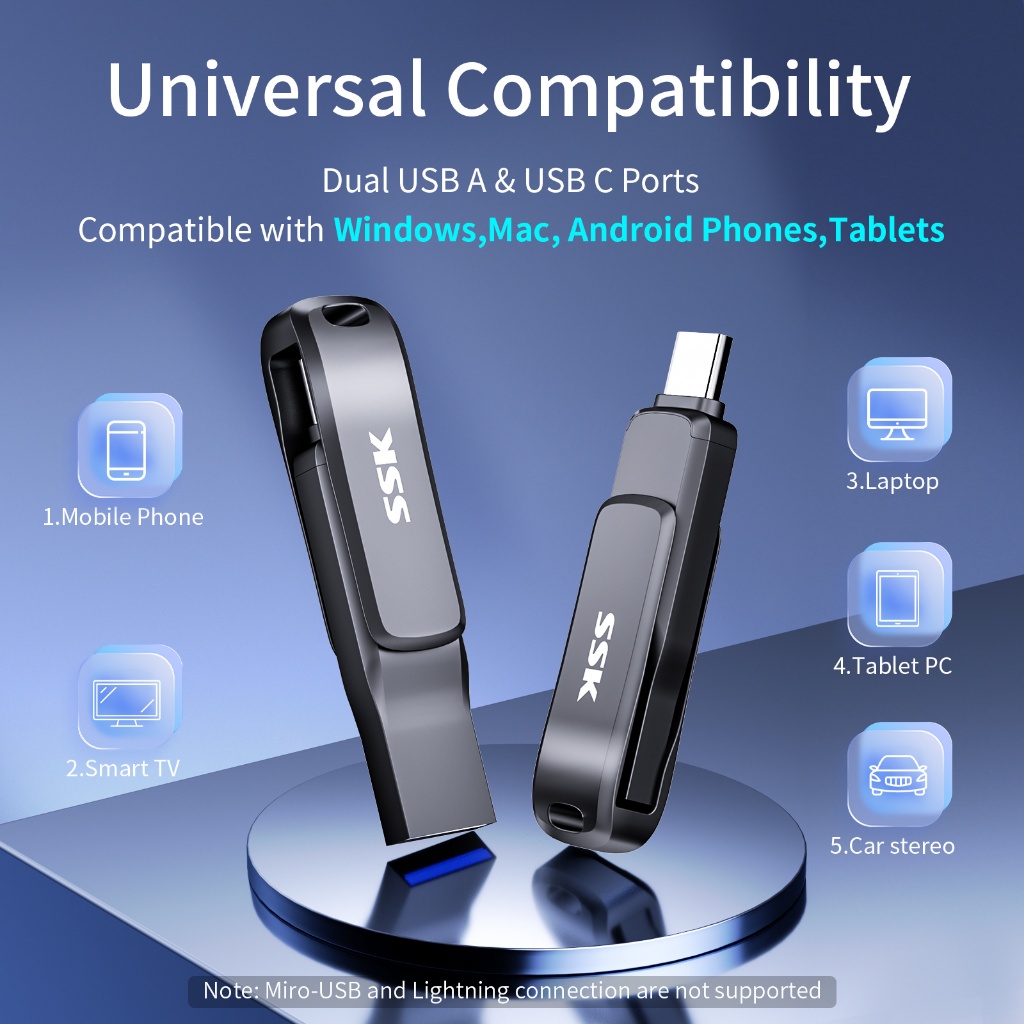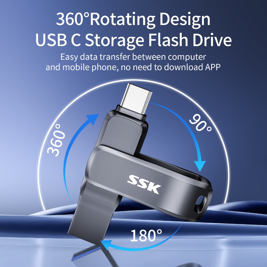 SSK Flashdisk Dual Connection USB Type C 3.2 High Speed 240MB/s FD002 Flash Drive 64GB