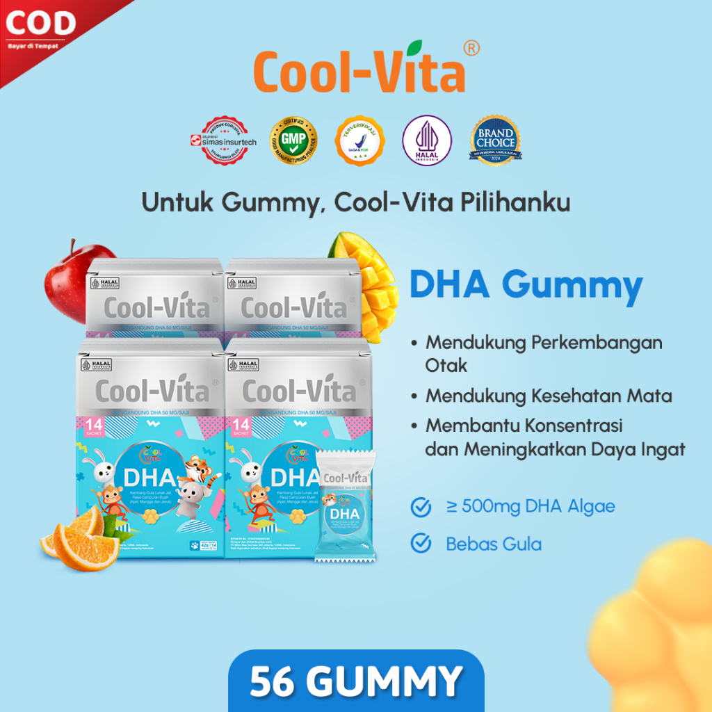 Coolvita 4 Box Dha Gummy Rasa Apel, Mangga, Dan Jeruk | Untuk Si Kecil Yang Aktif | Suplemen Kesehatan Otak Dan Imun [Be